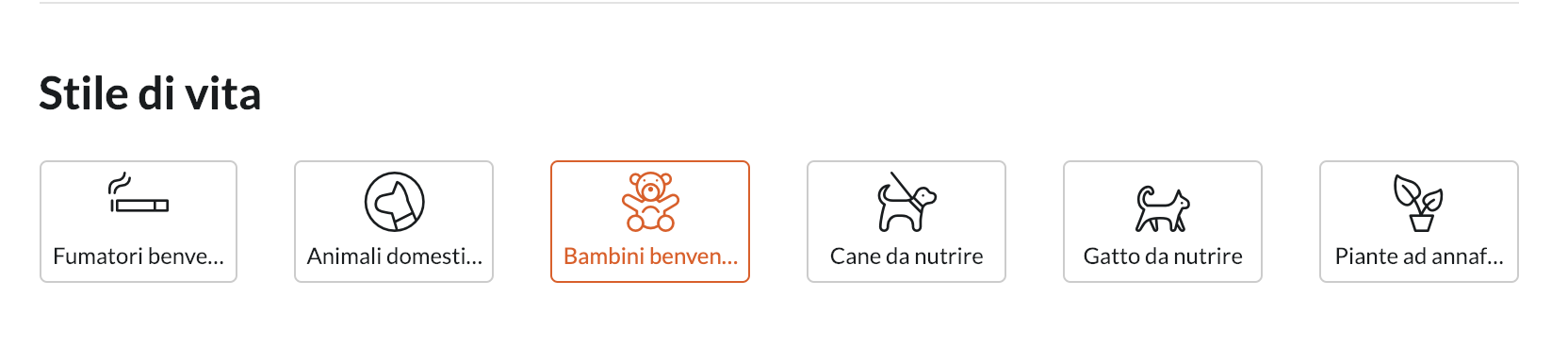 Per quanto riguarda la sezione Stile di vita, qui è dove si indicano altre condizioni specifiche della propria casa. Gli animali sono ammessi? Hai animali di cui il tuo ospite si dovrà prendere cura durante lo scambio? I bambini sono i benvenuti? Scegli le tue opzioni di stile di vita qui!