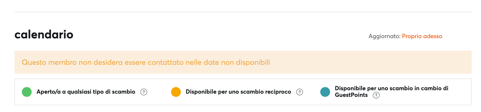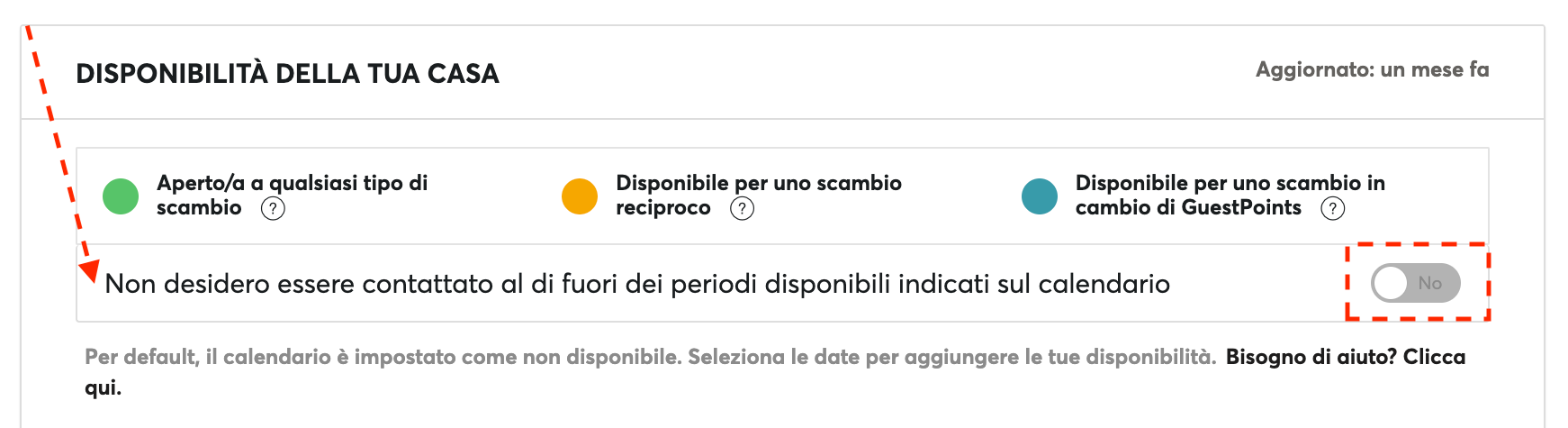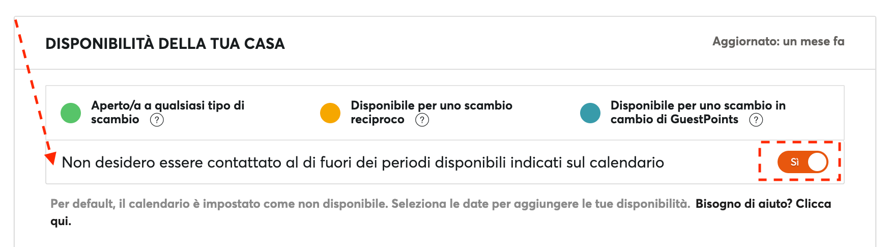 Il Calendario è molto importante perché indica in modo chiaro in quali date la casa è disponibile e quali sono le tue preferenze di scambio.